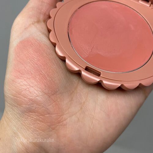 クリーム系のチークって結構きつく色づいて調整が難しいものもありますが、ふんわり質感なので色づきが濃すぎないところもよきです。