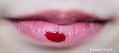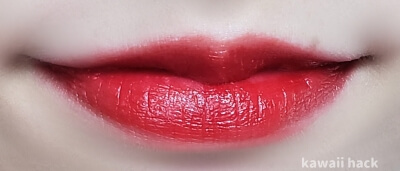 まさに「人を食ったような唇」ですが、ポンポンと薄く馴染ませるともう少し柔らかい雰囲気になります。