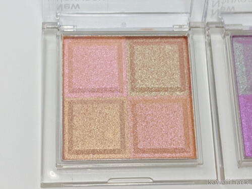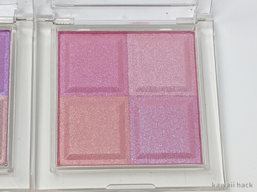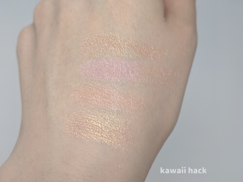 4色入ってるのにほぼ全部同じ色なので、4色を重ねて…グラデにして…って使うのではなく、単色シャドウが4つ集ったような印象を受けました。