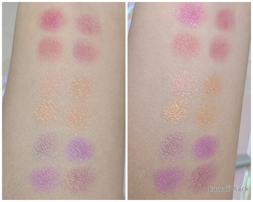 そして、アメリカのアイシャドウって、ほんの少しでくっきり色がつくようなしっとり&発色がめちゃくちゃいいものが多いので、今回のパレットのシアーな発色には驚きました!