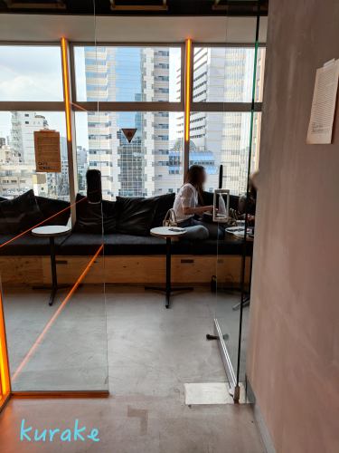 ちなみにカフェスペースはこんな感じで、細長いソファがありました。カフェでも本は読めるようです。