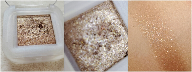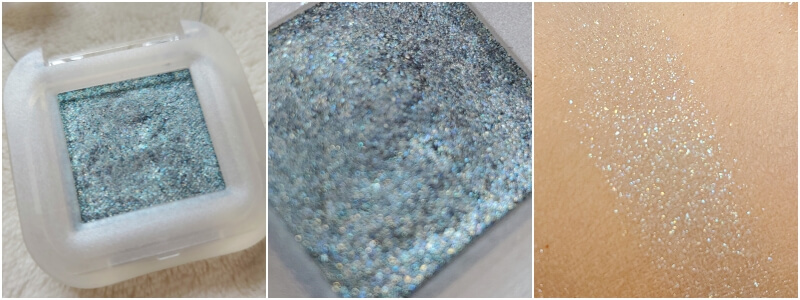 大粒ラメがぎゅっと固まってできたアイシャドウで、ベースの色がないようなものなんです。