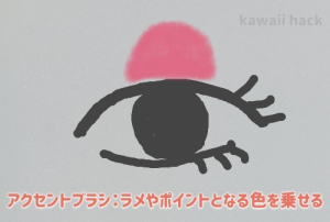 色を塗った上まぶたにラメやパールをトッピングするときにこのブラシを使います。(これは海外のメイクアップ方法でよくある塗り方な気がします)