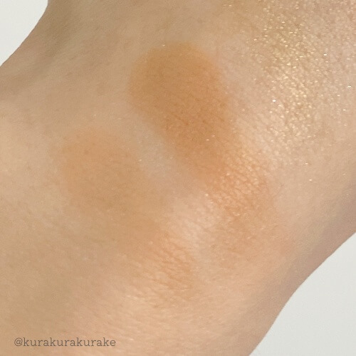 店頭でテスターを使いましたが、薄いブラウンベースにゴールドとオレンジパールの日常使いしやすそうなカラーでした。テクスチャーやラメがメインな感じは上の2つと似ていました。