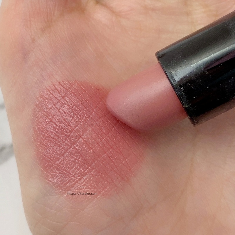 腕の上ですうっと引くとかすれるパウダリーなテクスチャなので、唇の皮がむけているときに塗ると見た目が残念な感じになります…