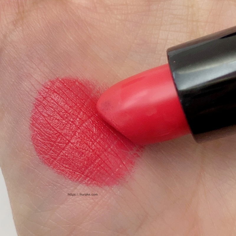 公式ではピンキッシュコーラルと書いてあります。確かにオレンジの存在もすこし感じる色。