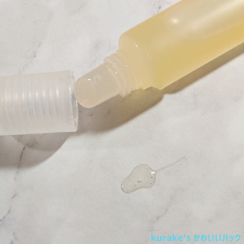 どろっと唇に乗って、「んぱっ」って上下唇を合わせるとちょっと唇が開きにくくなるかんじです。笑