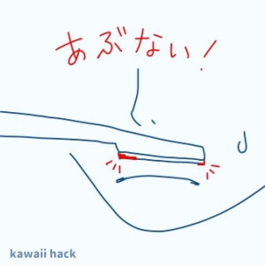 普通刃先で狙った場所を剃ると思うんですが、歯が長すぎて頭やお尻の部分(図の赤い部分ね)でザクッといきそうになることがあります。