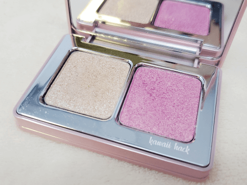 中にセットされているのはクリームチーク、しっとり系パウダーチーク、大粒のラメ、ハイライトパウダーです。