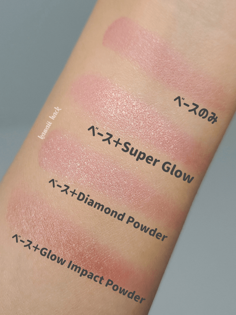 上からBase、SuperGlow, Diamond Powder, Glow Impact