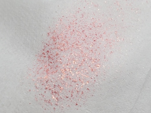 色は蛍光オレンジとか明るいサーモンピンクという言葉が合うと思います。これもゴールドシマー(粒が大きすぎてラメっぽいけど)入りです。