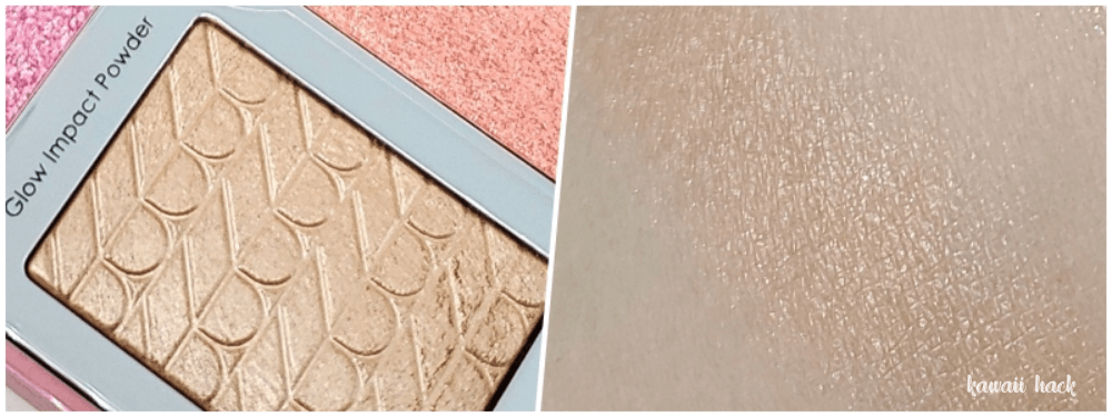Glow Impact Powderを塗ったところには黄みがかっているのもわかると思います。