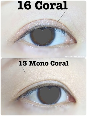上から16 Coral、13 Mono Coral、19 BABY PINKです。