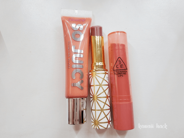 もっちりべっとり系のリップ例:Colour Pop/ So juicy plumping gloss,  Clarins / Lip comfort oil