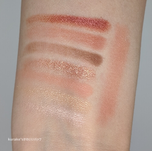 右から二番目の色を涙袋に入れると、大人でも違和感のないうさぎメイクみたいになります、うれしい。
