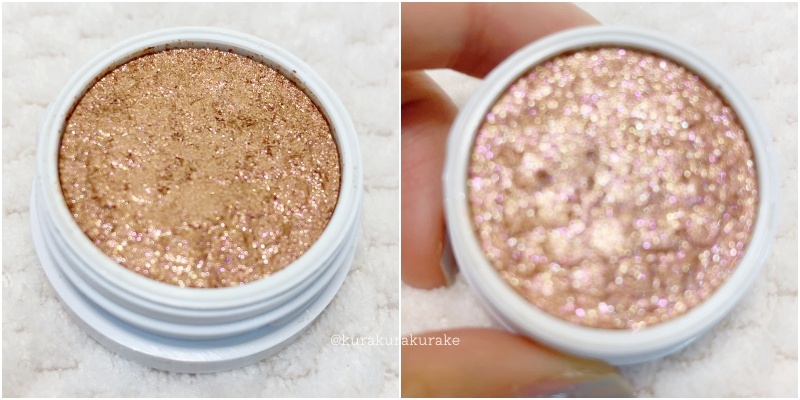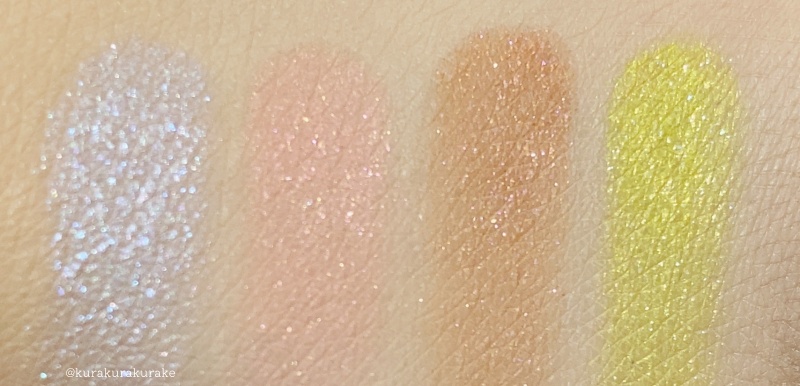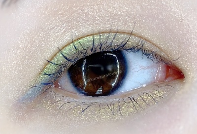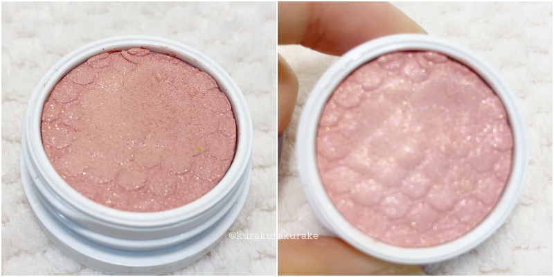 他の色に比べてこれは特に粉が柔らかくふわふわで、まぶたに密着させやすいです。